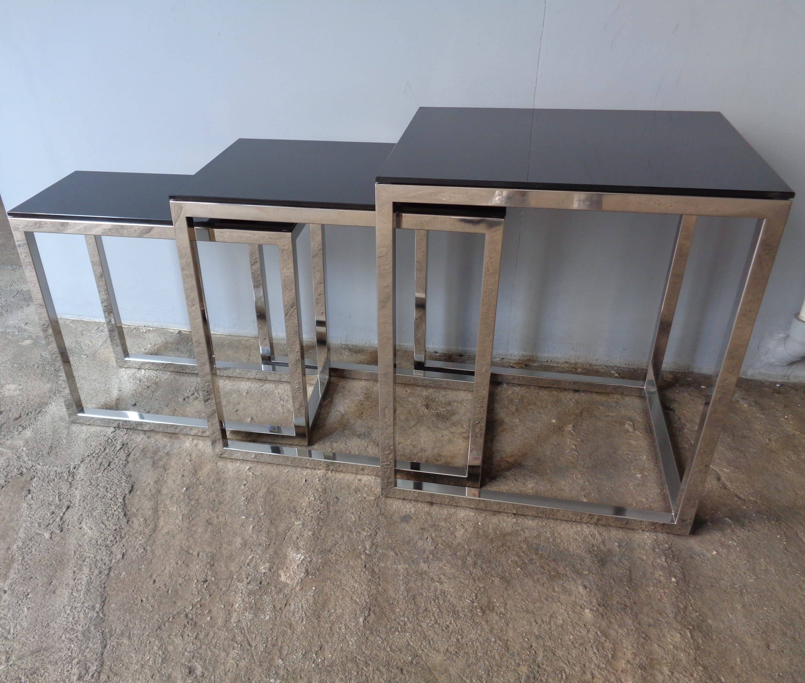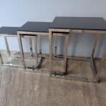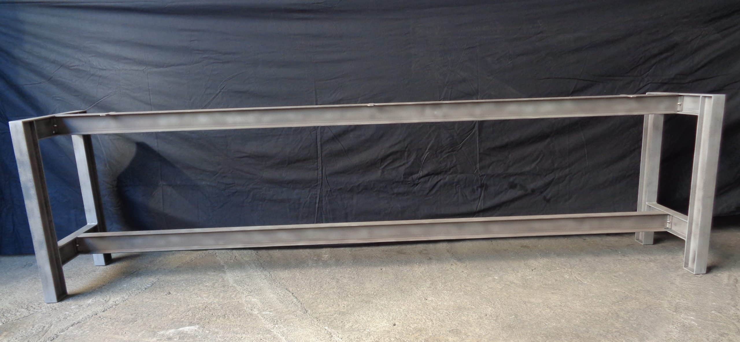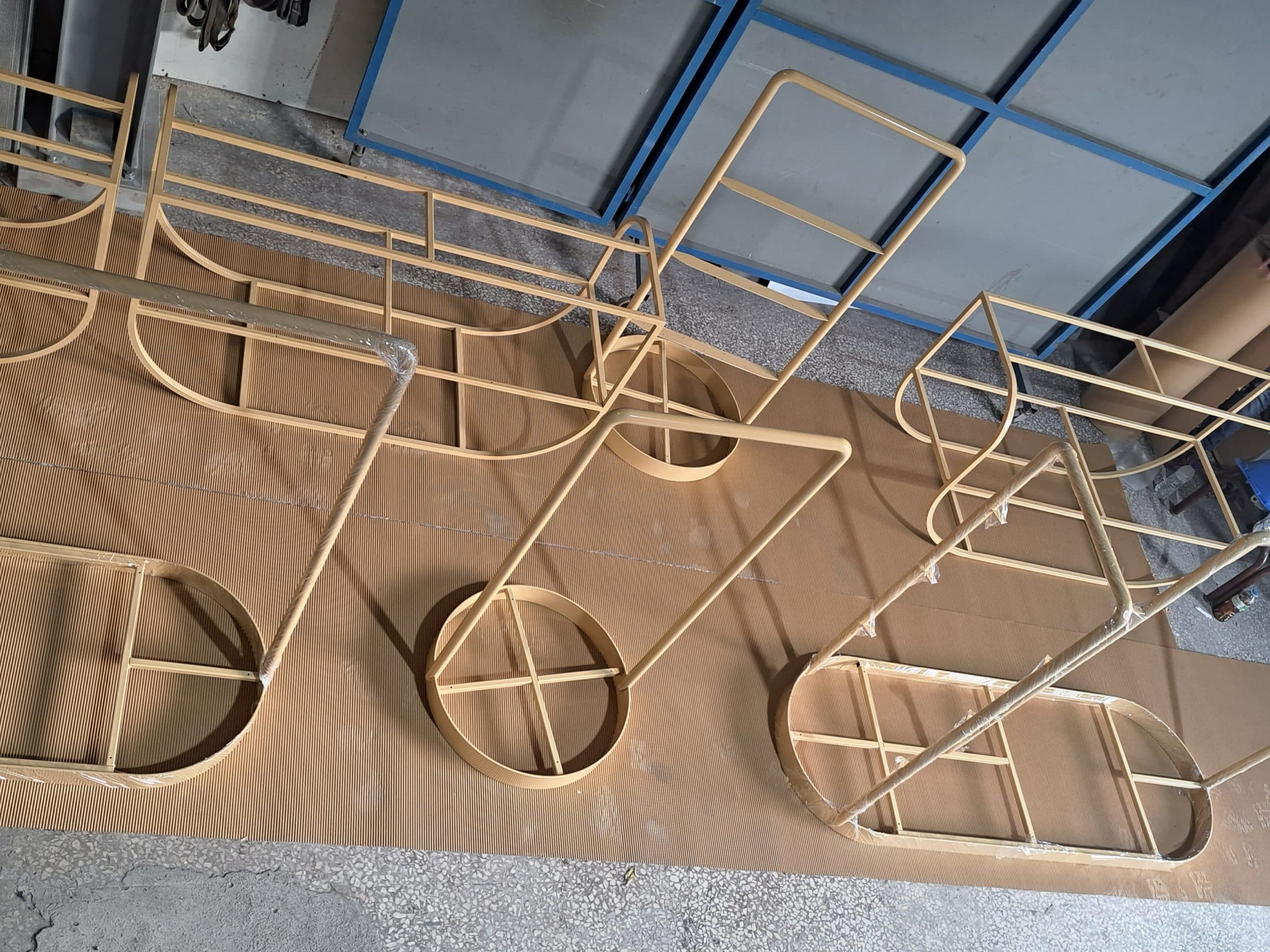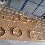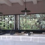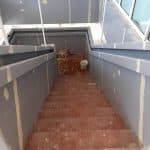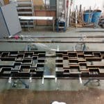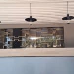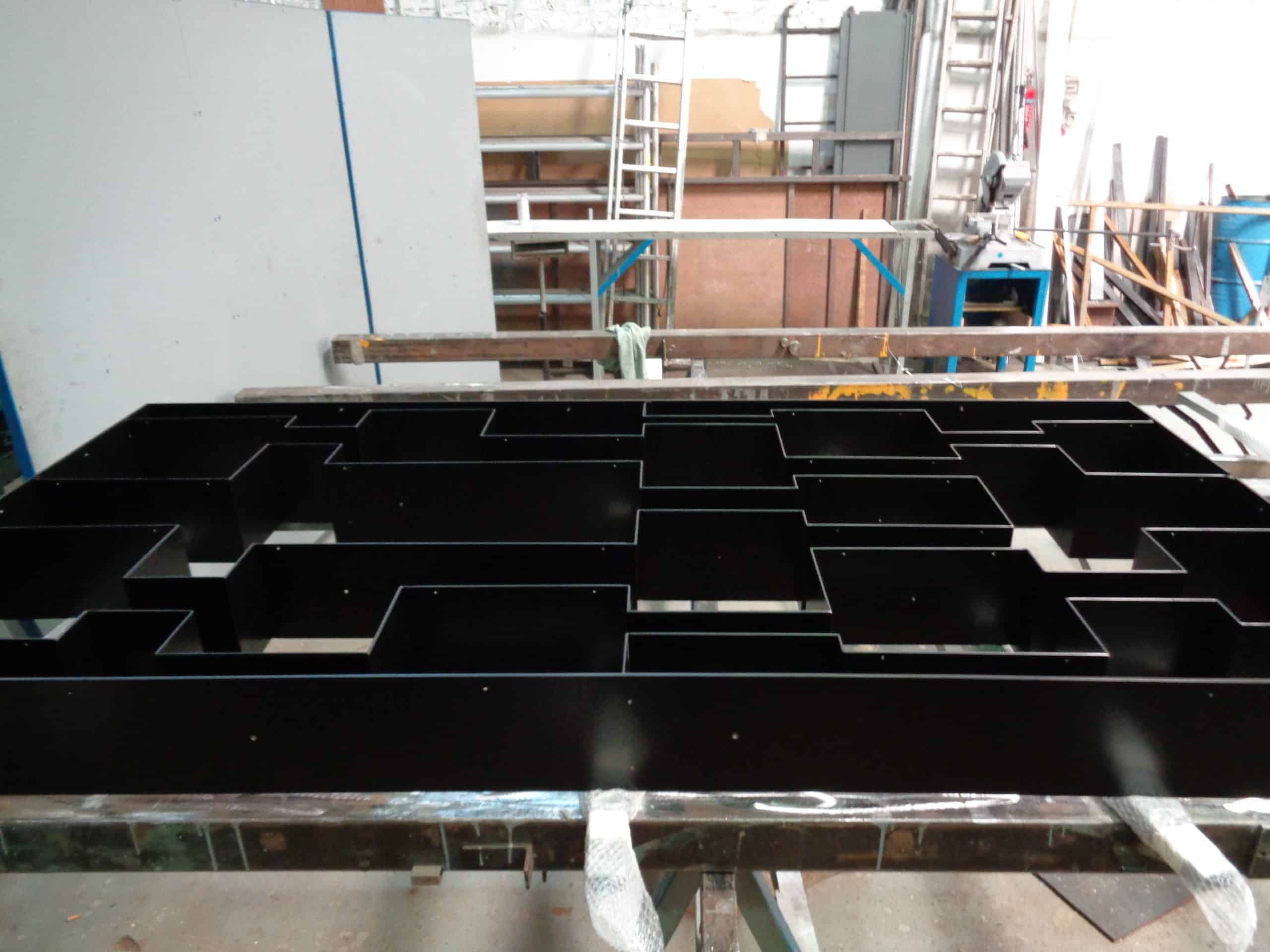 Κατασκευή ραφιών από χάλυβα σε μπαρ πισίνας με επένδυση από γωνιά ορείχαλκου.
