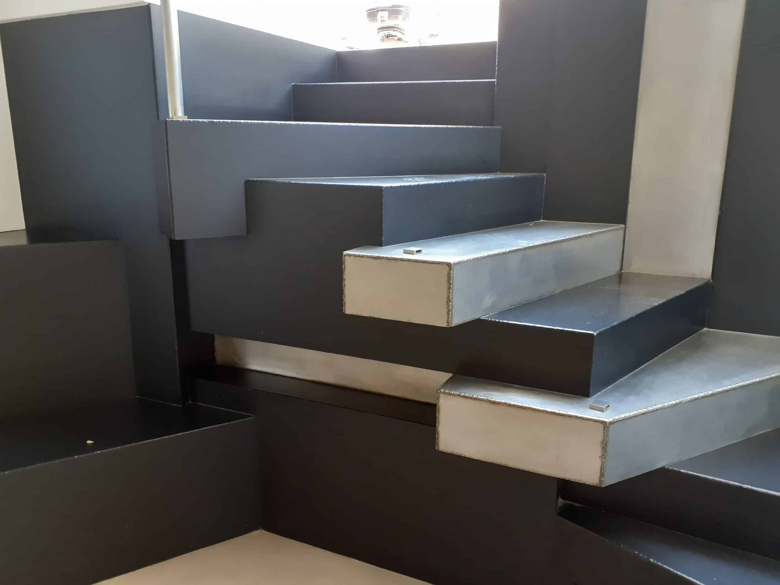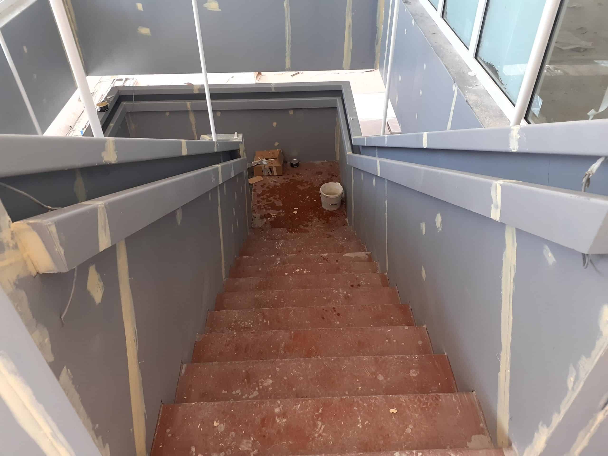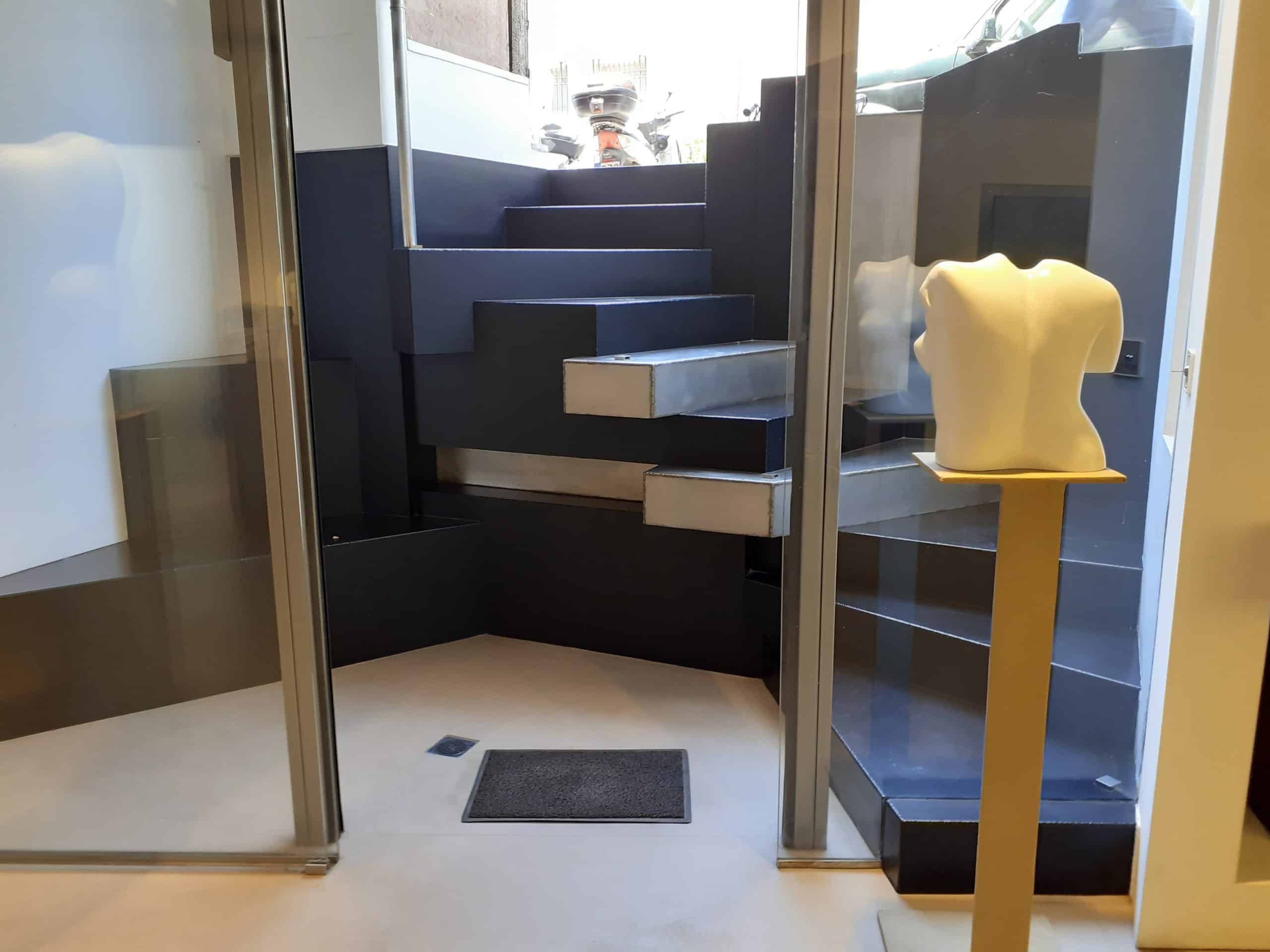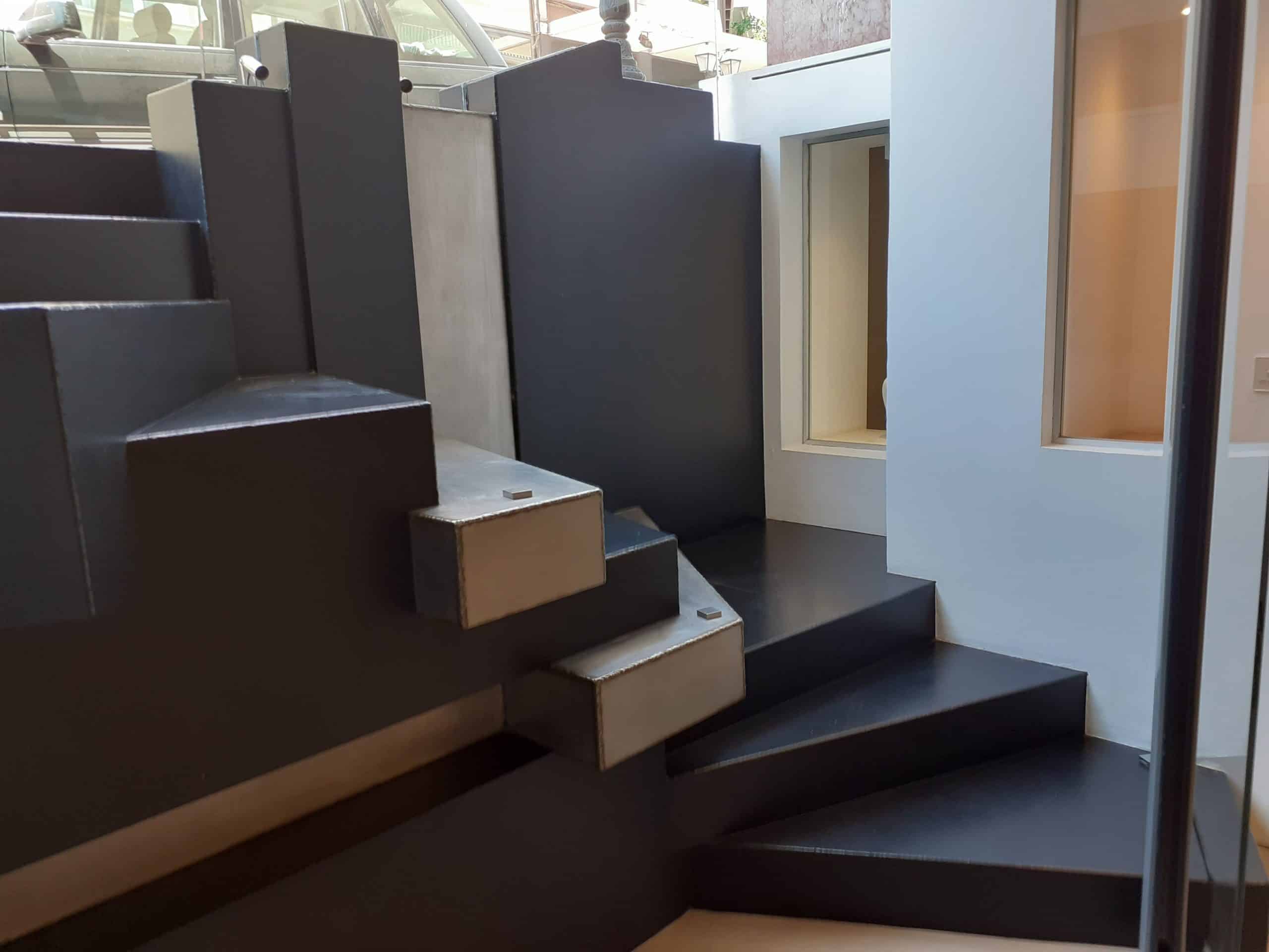 Μεταλλική σκάλα και κρυσταλλοθήκη από χάλυβα και ανοξείδωτο